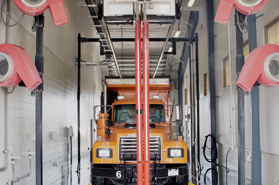 The V-Max® is Belanger’s state-of-the-art touch free automatic large vehicle wash system. This overhead gantry system delivers unmatched performance reliability and superior cleaning results, all with minimal maintenance requirements. Available in three system configurations, the V-Max can easily provide a quality touch free wash to both a 30 foot dump truck or a 75 foot tractor trailer and everything in-between in as little as 3-6 minutes.