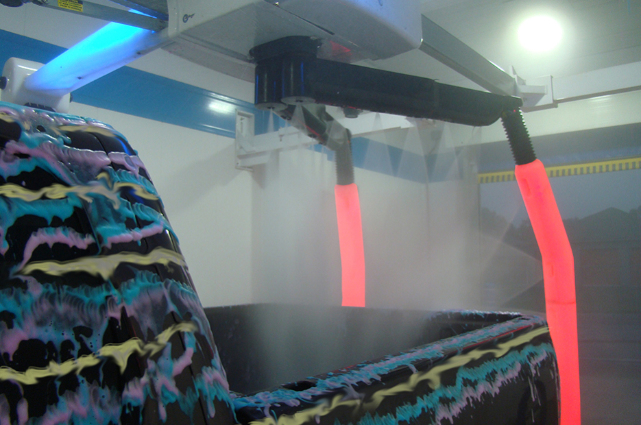 Increase appeal with branding options and functional lighting. Available white carriage housings and colored branding panels with custom logos are perfect for site branding. Optional ‘Active Site Marketing’ Wing Covers cycle through 6 backlit colors to attract customers off the street and onto your site. And the available LED Navigation System illuminates the wash arms with RGB color changing lights to help drivers quickly position their vehicles.